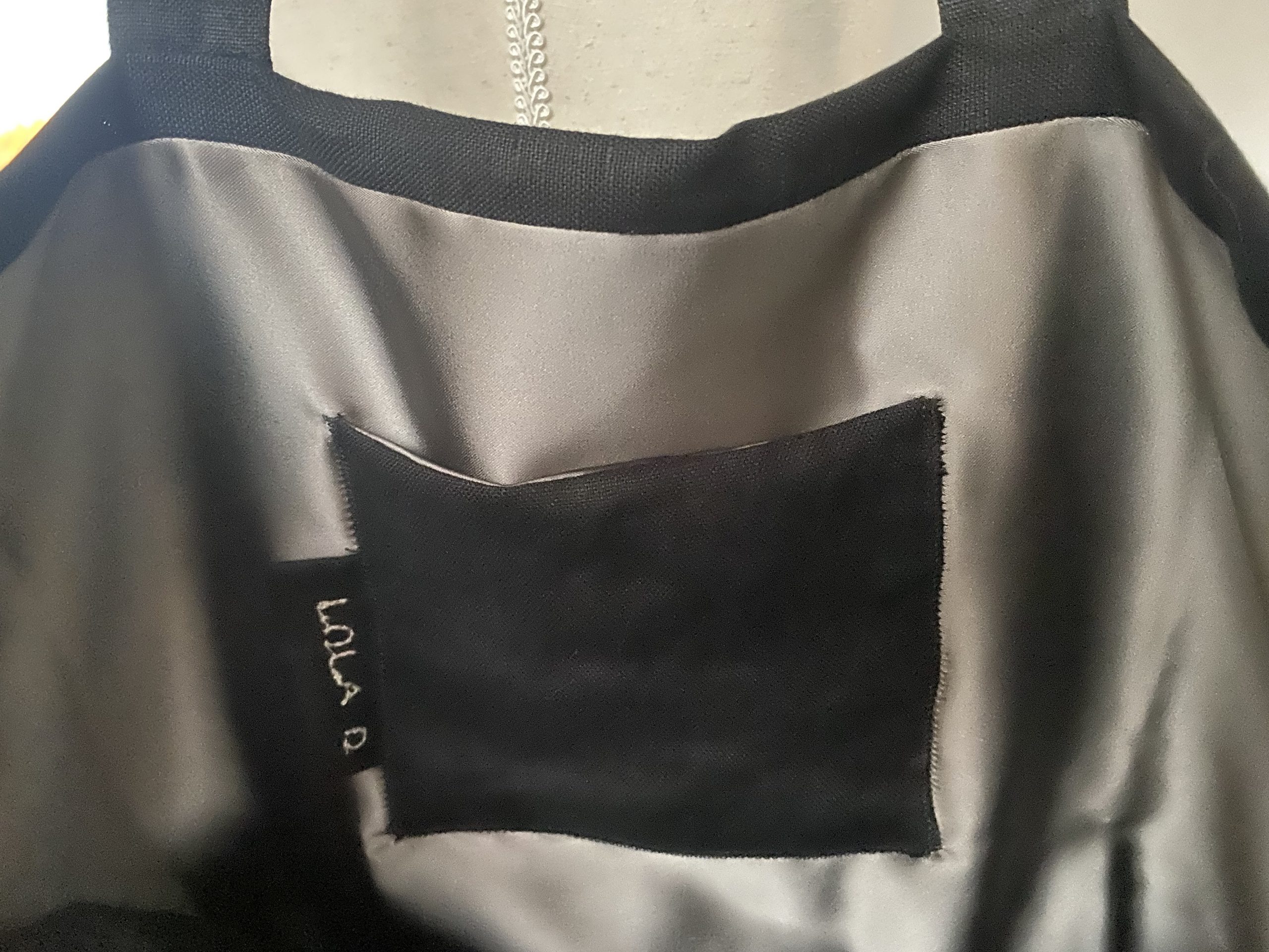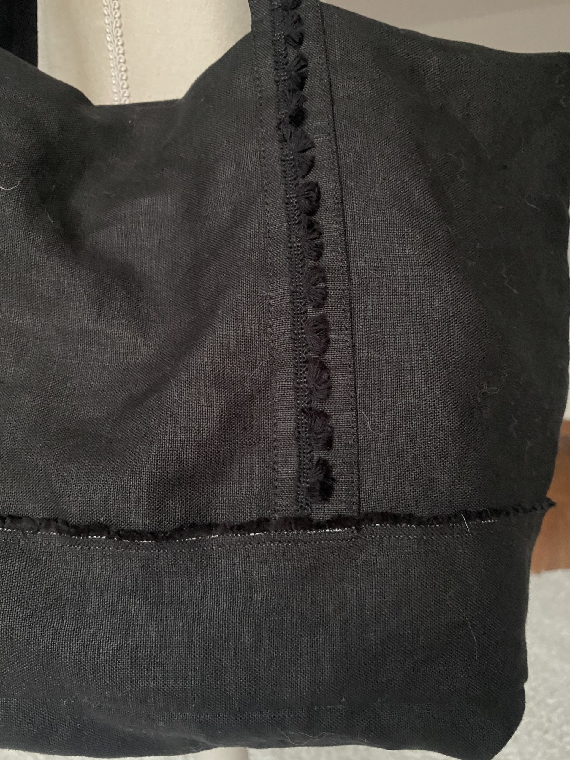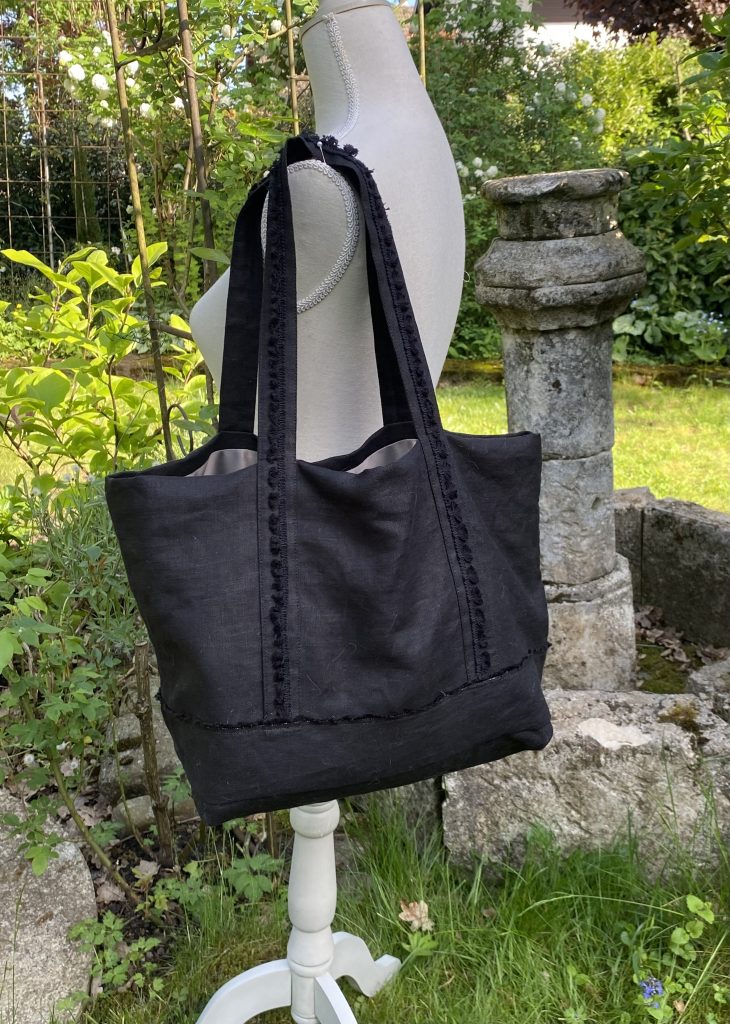 Sac cabas lin noir orné d’un galon assorti sur les anses