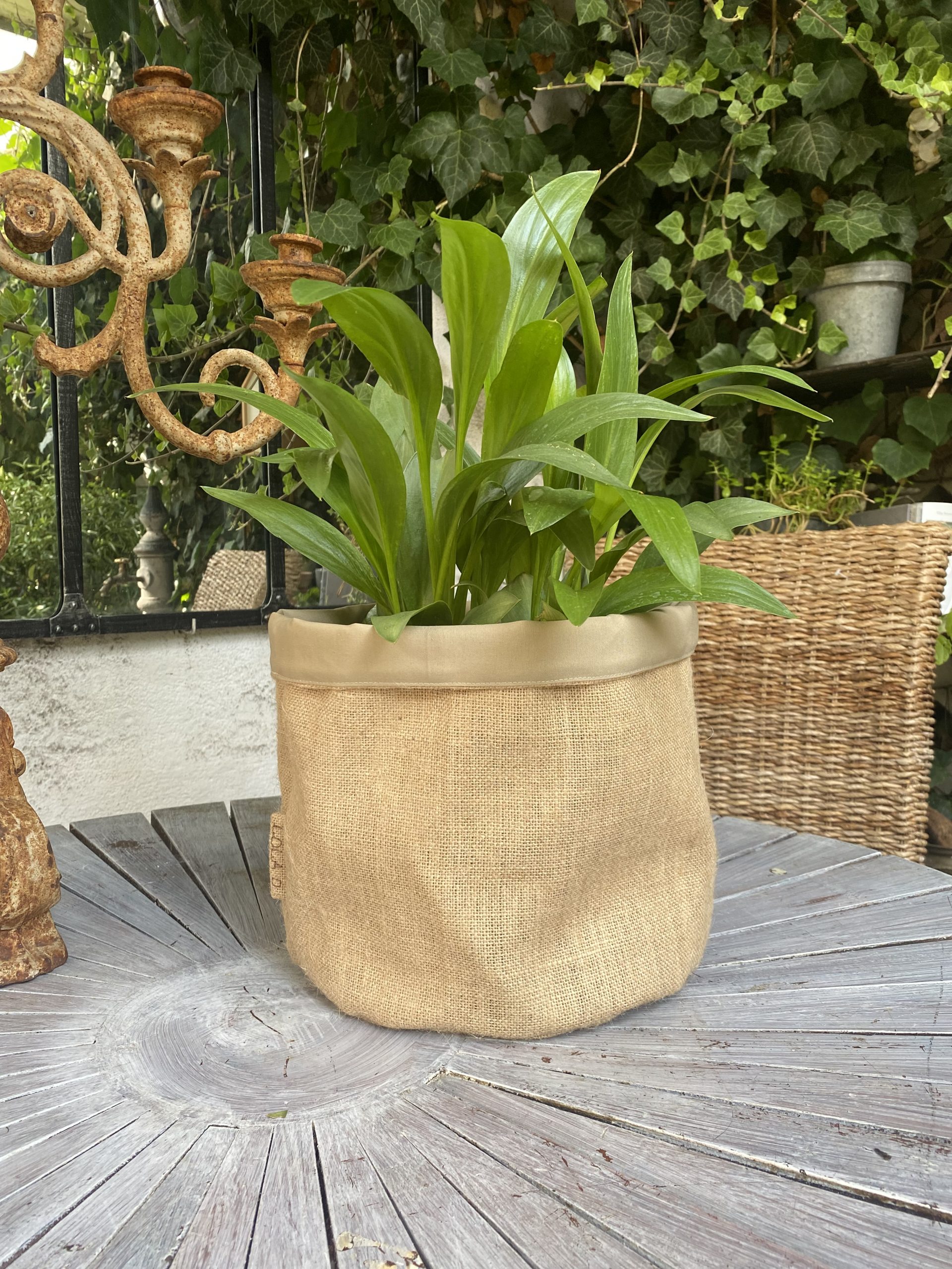 Lot de 2 Cache Pots Toile de Jute / Beige