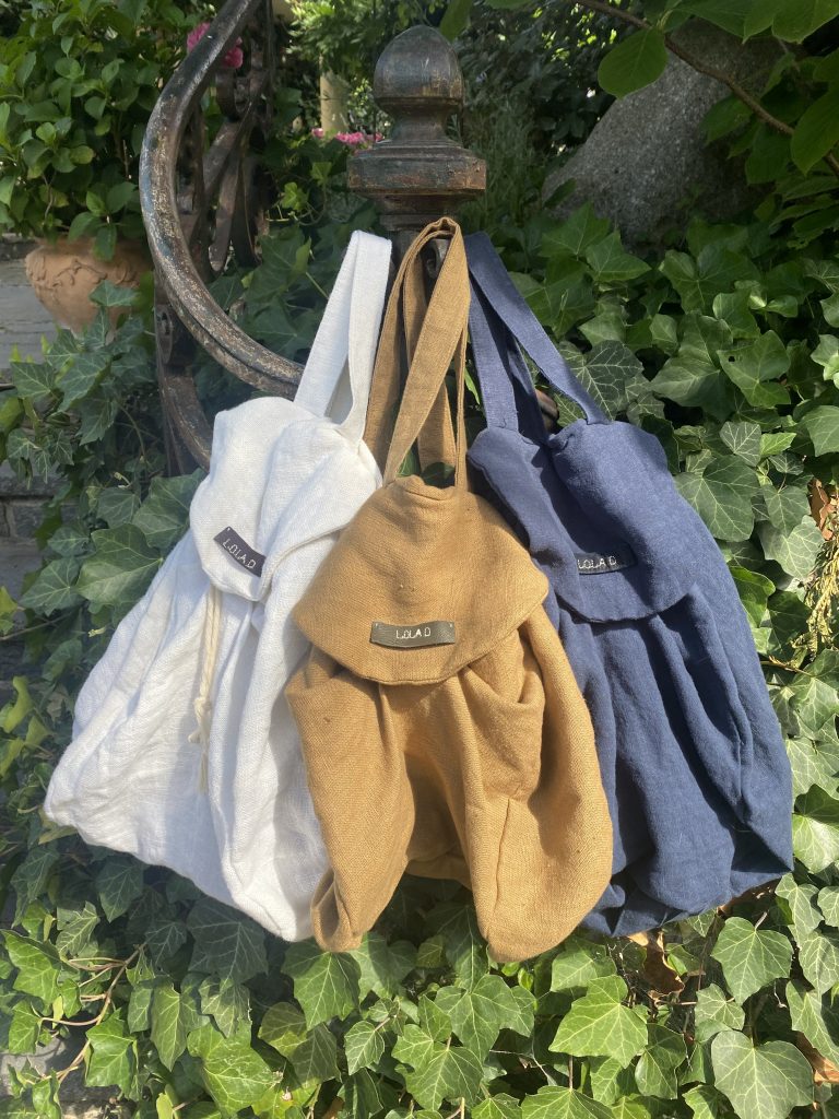 Sac à dos intemporel en lin lavé de qualité couleur bleu marine avec fermeture aimantée.