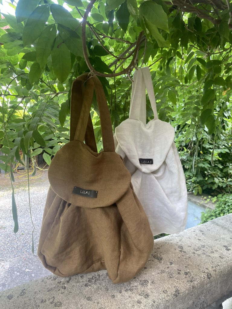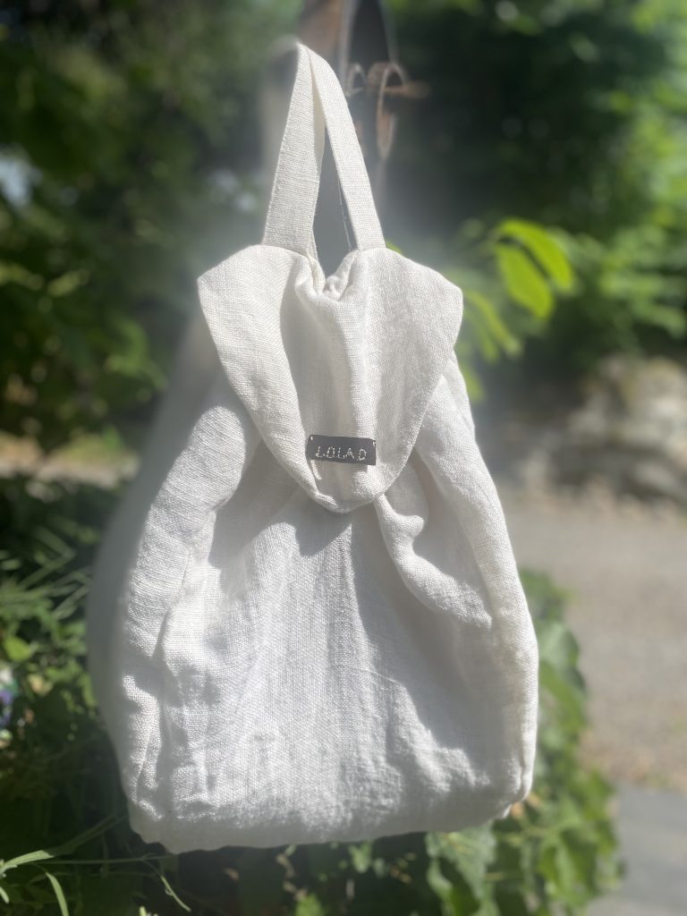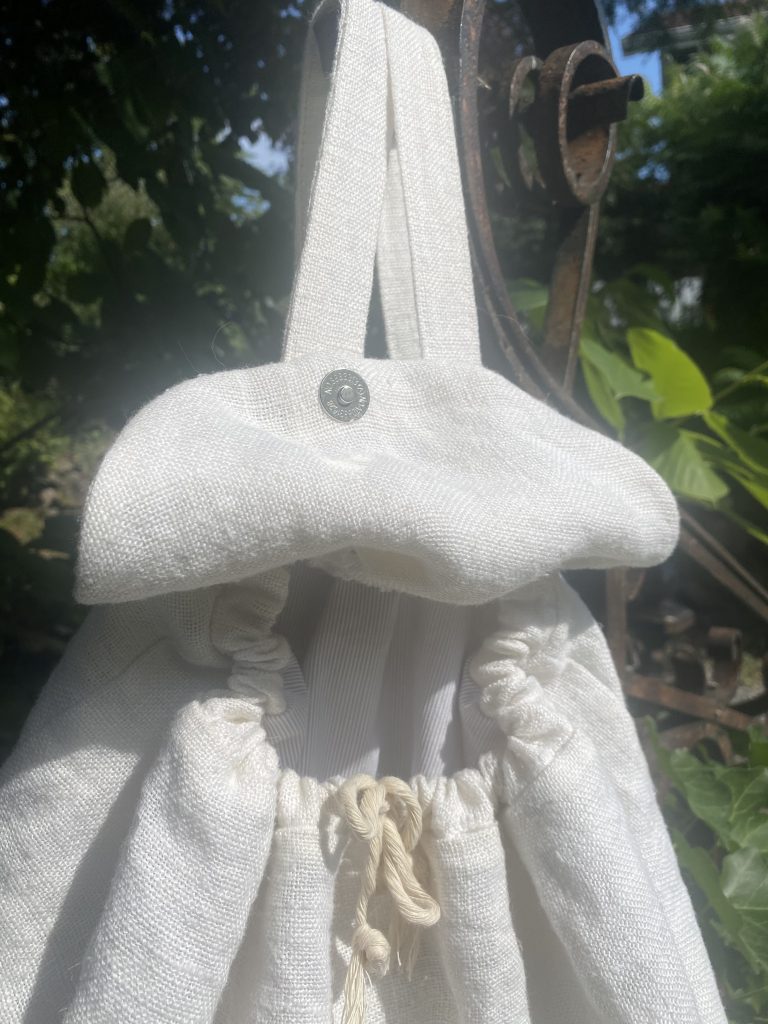 Sac à dos intemporel en lin lavé de qualité couleur écru avec fermeture aimantée.
