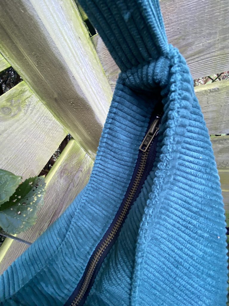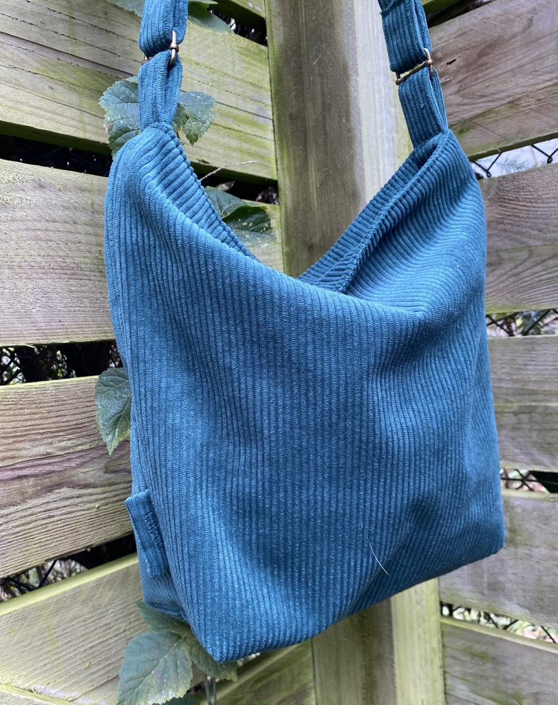 Sac tendance bohème en velours Vert Emeraude avec une anse de 105 cm fermé par une fermeture éclair de 35 cm.